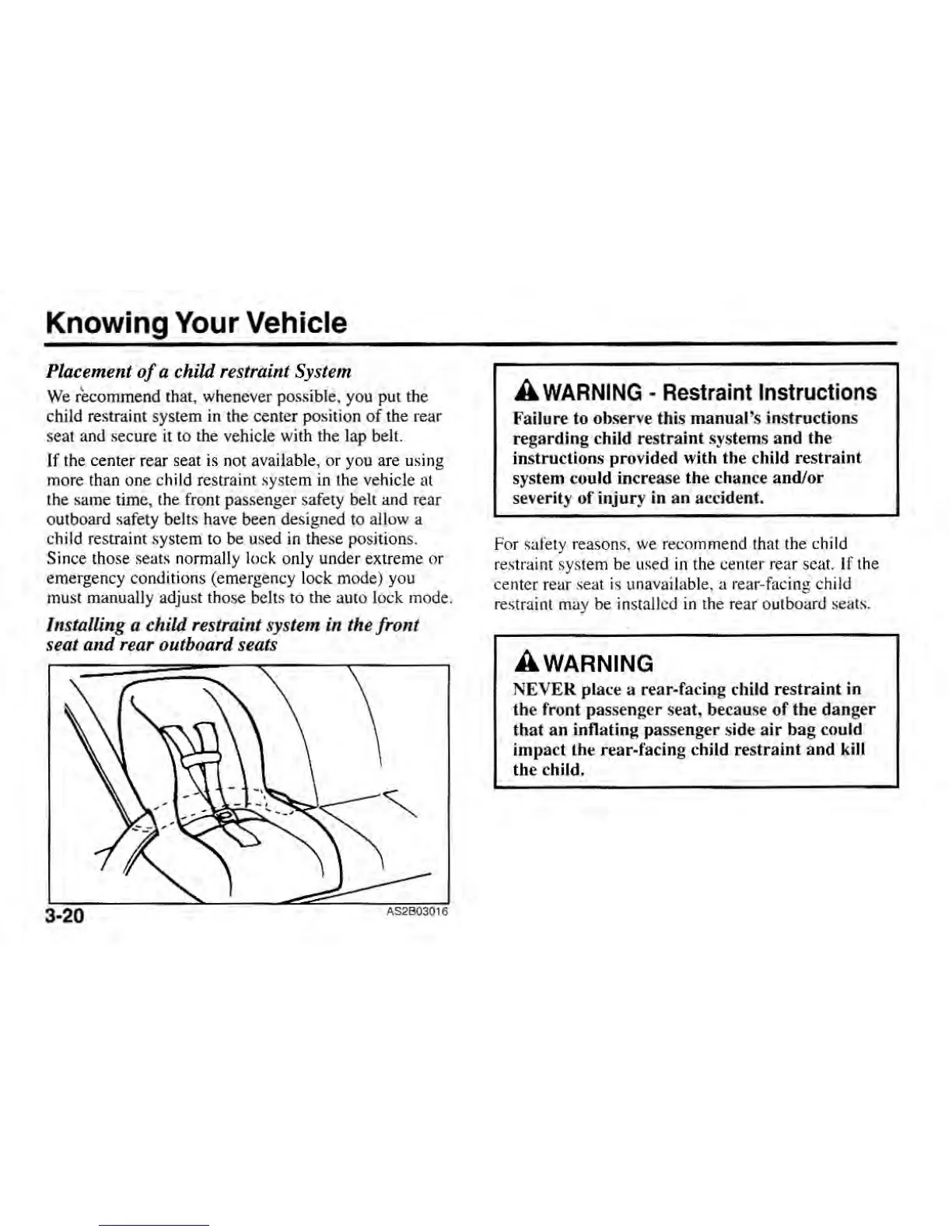 Kia Rio 2001 - Placement of a Child Restraint System; Installing Child Restraint System in Front Seat;Rear Outboard Seats