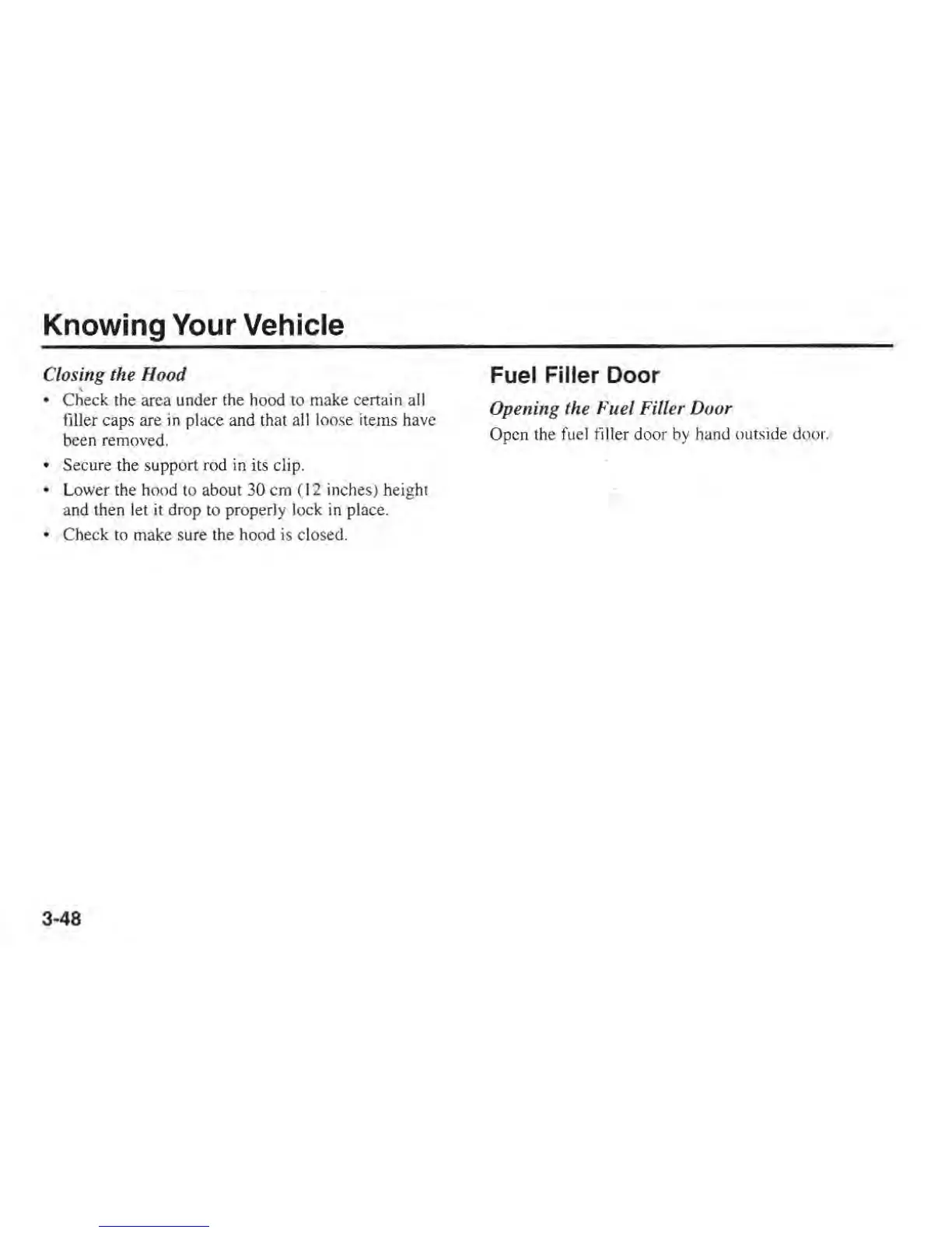 Kia Rio 2001 - Fuel Filler Door; Closing the Hood