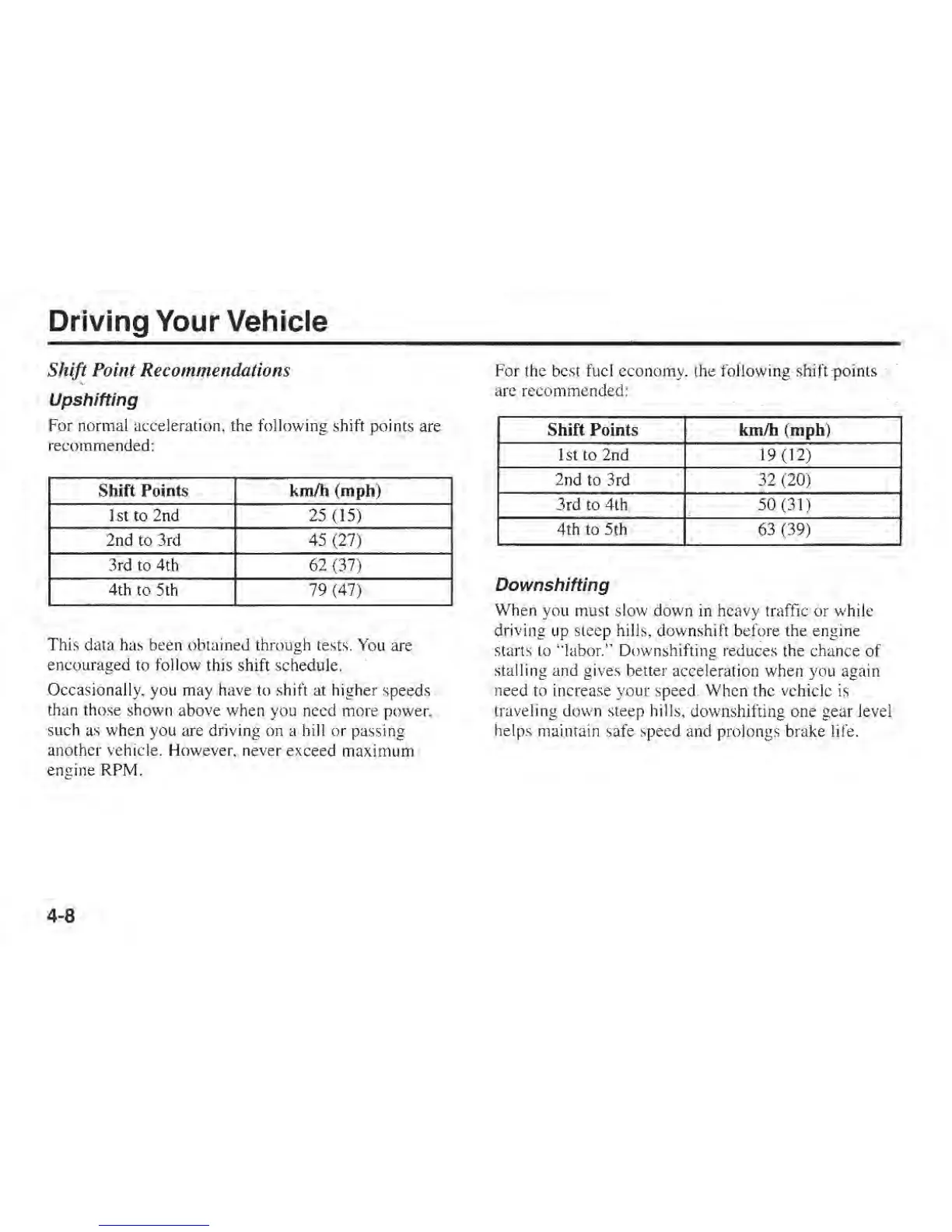 Kia Rio 2001 - Shift Point Recommendations; Upshifting; Downshifting