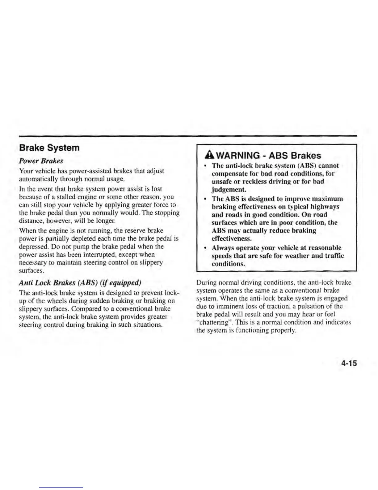 Kia Rio 2001 - Brake System; Power Brakes; Anti Lock Brakes (ABS)