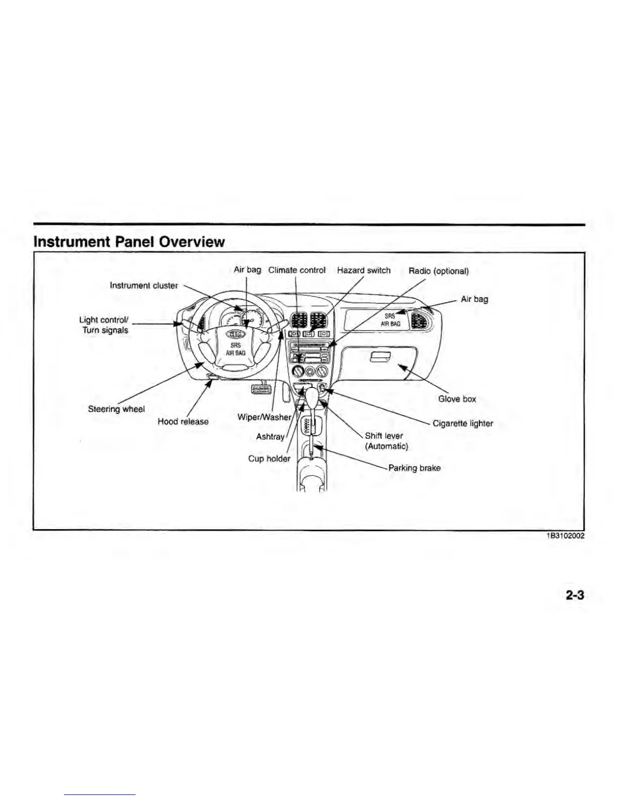 Kia Rio 2001 - Instrument Panel Overview
