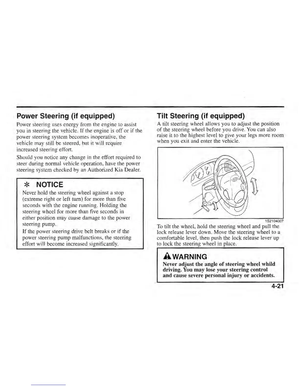 Kia Rio 2001 - Power Steering; Tilt Steering