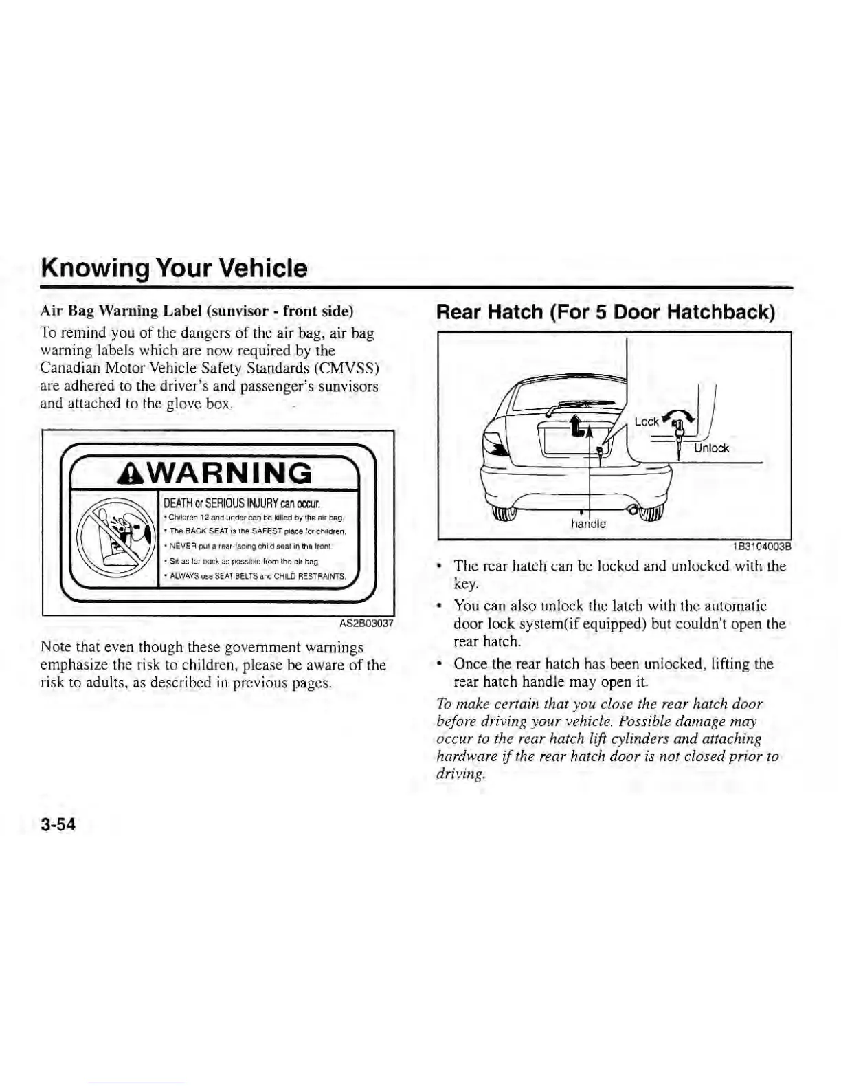 Kia Rio 2003 - Rear Hatch; Air Bag Warning Label