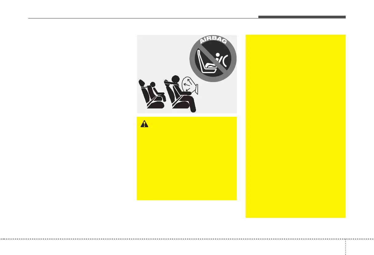 placed in the rear seat. Never