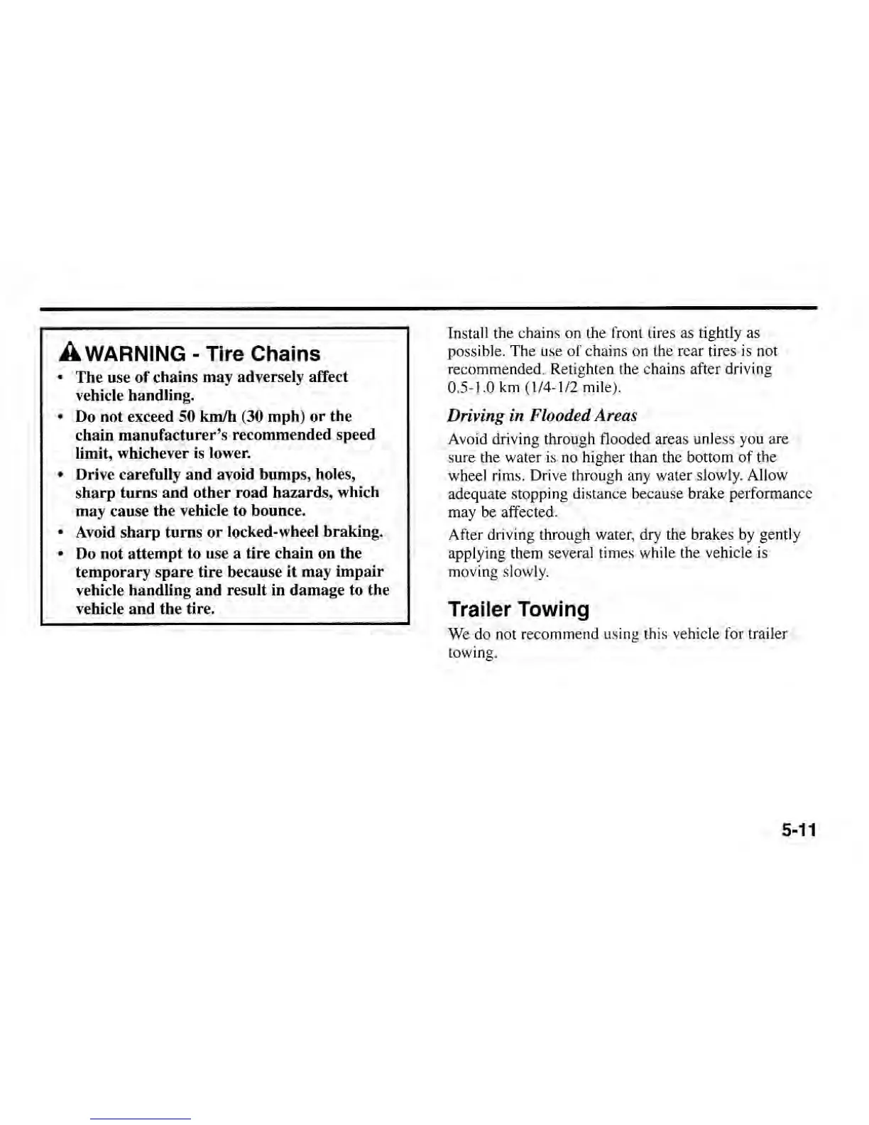 Kia SEPHIA 2000 - Driving in Flooded Areas; Trailer Towing
