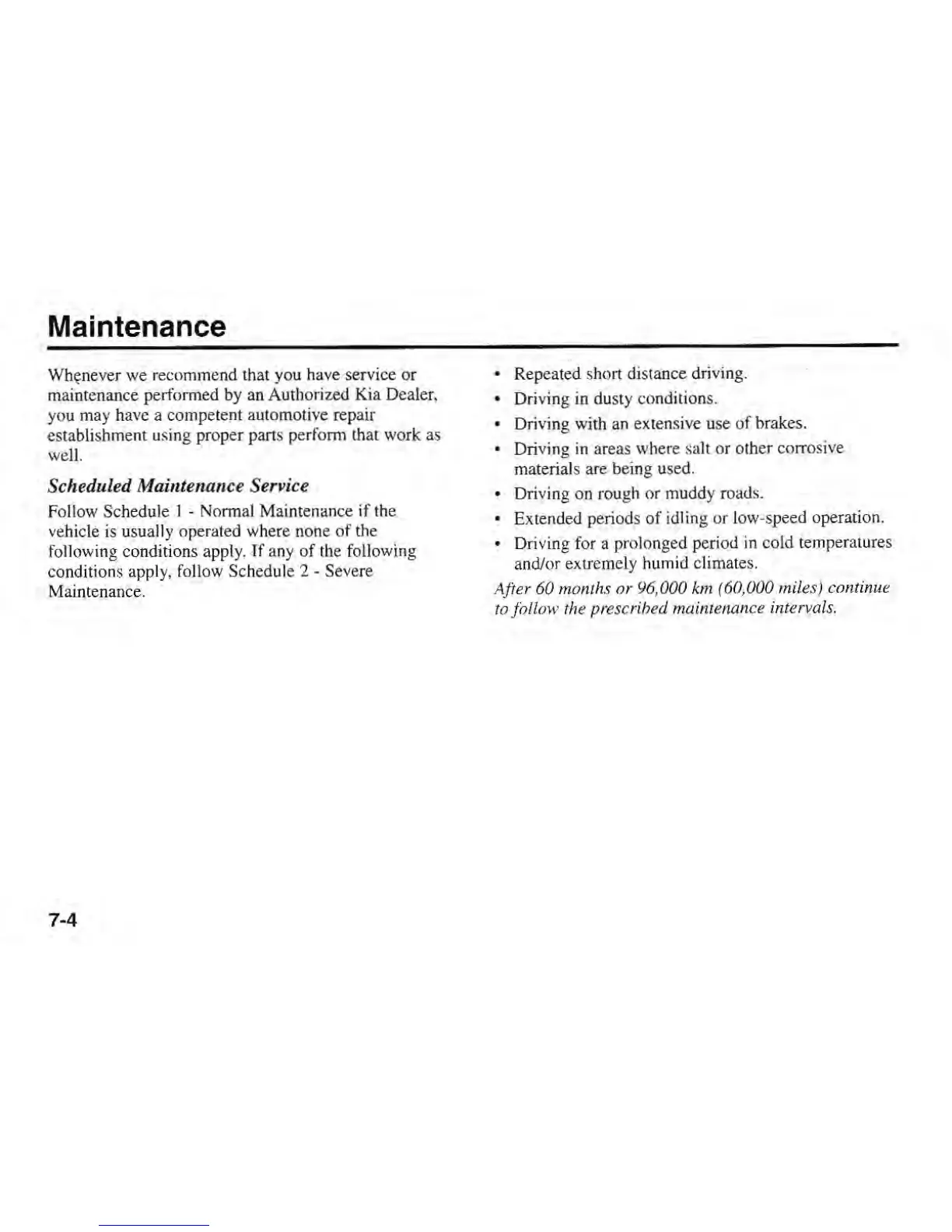 Kia SEPHIA 2000 - Scheduled Maintenance Service