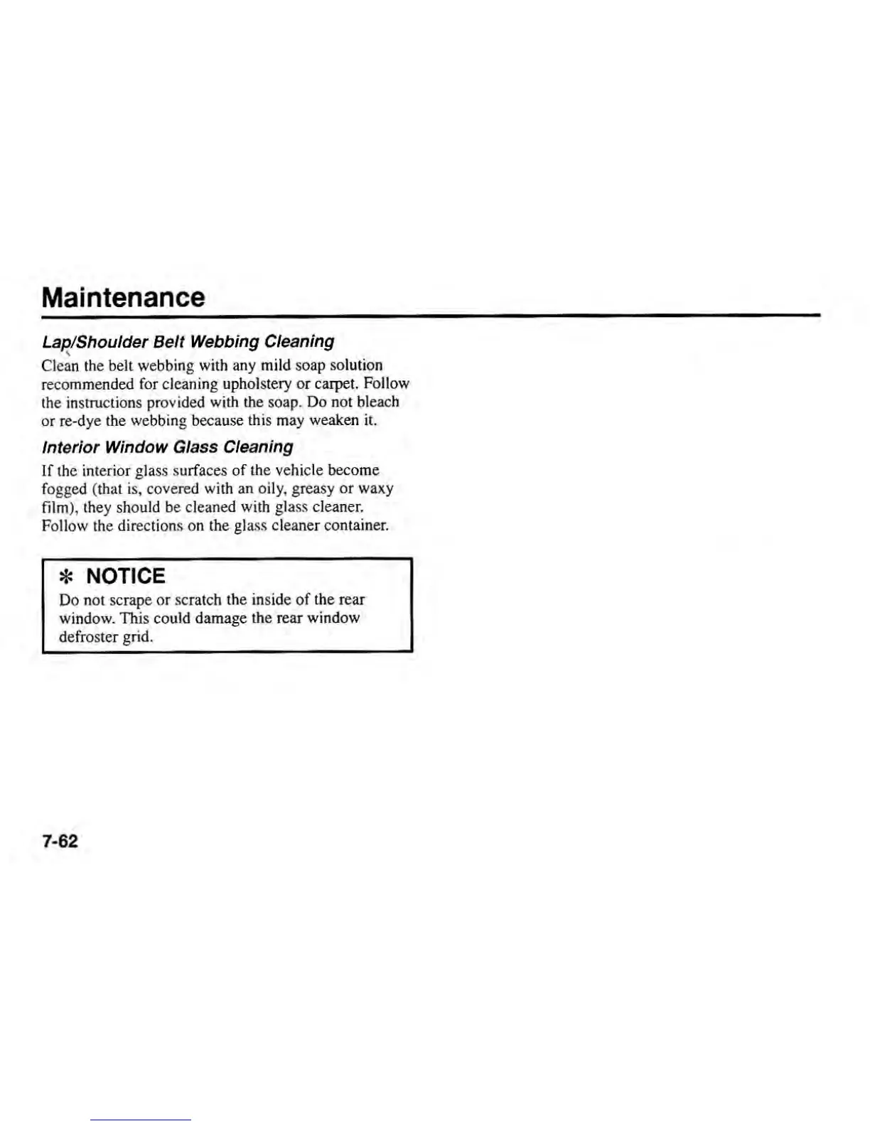 Kia SEPHIA 2000 - Lap;Shoulder Belt Webbing Cleaning; Interior Window Glass Cleaning