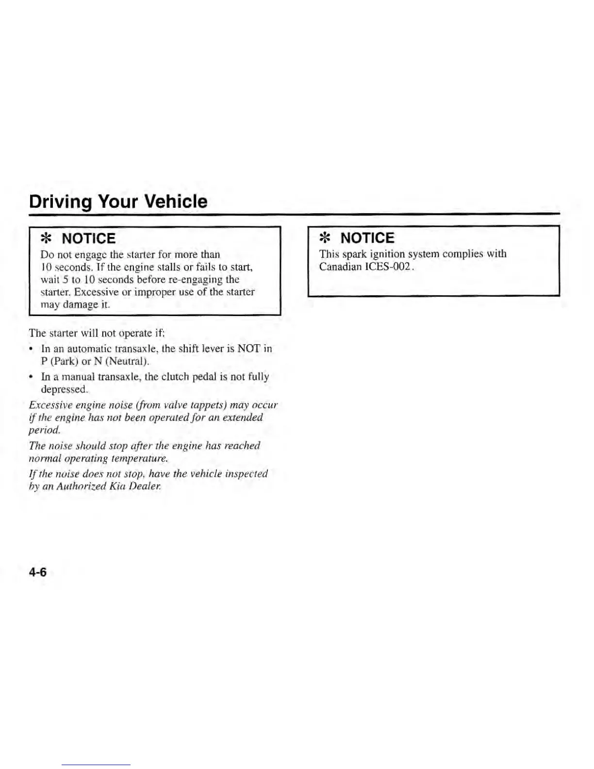 Kia SEPHIA 2000 - The Starter will Not Operate if; Excessive Engine Noise