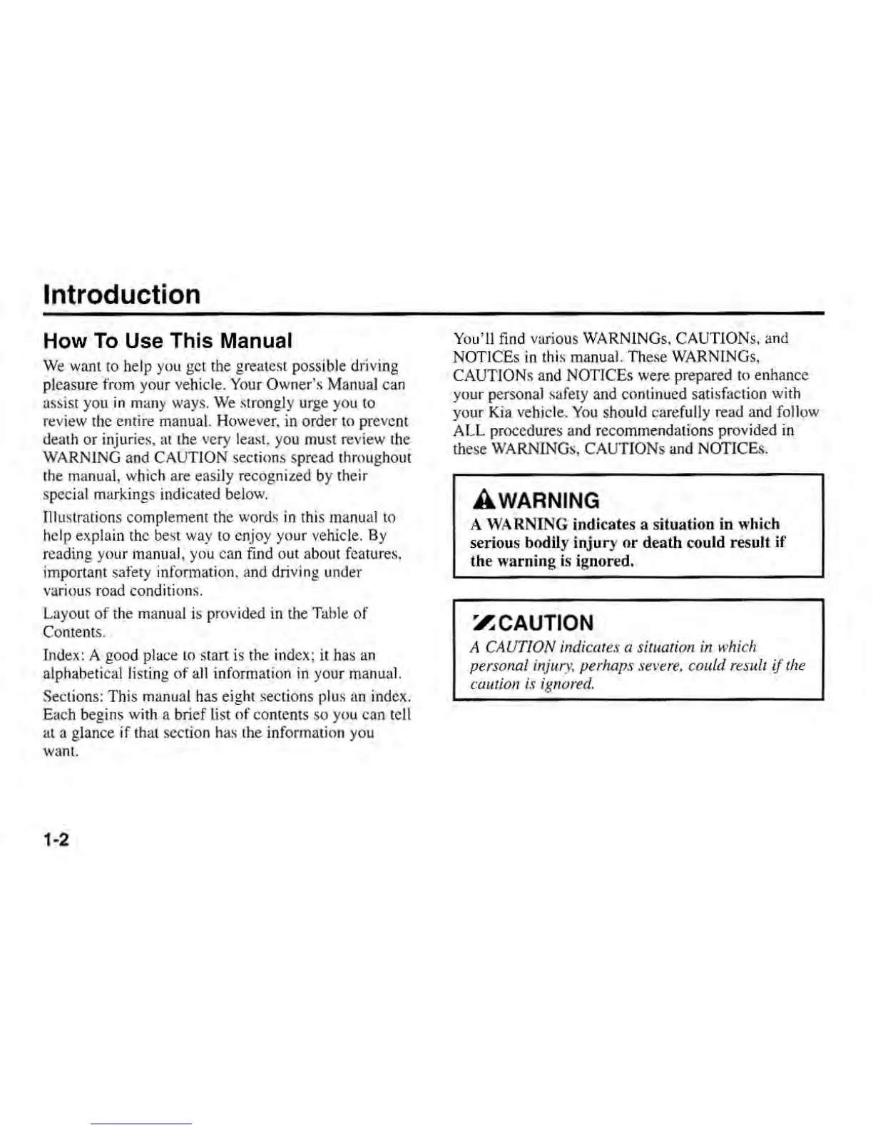 Kia Sephia 2001 - How to Use This Manual; Vehicle Break-In Process