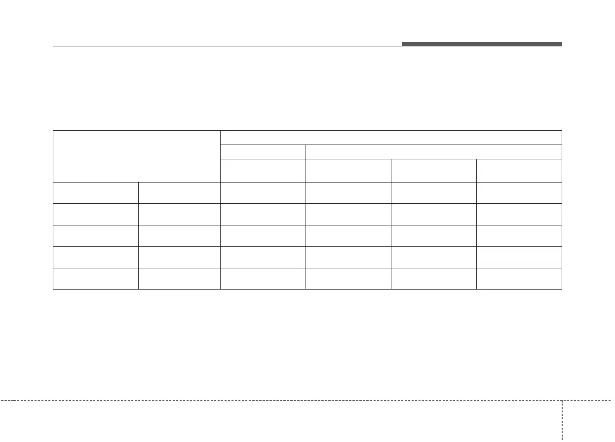 ty seats, refer to the following table.