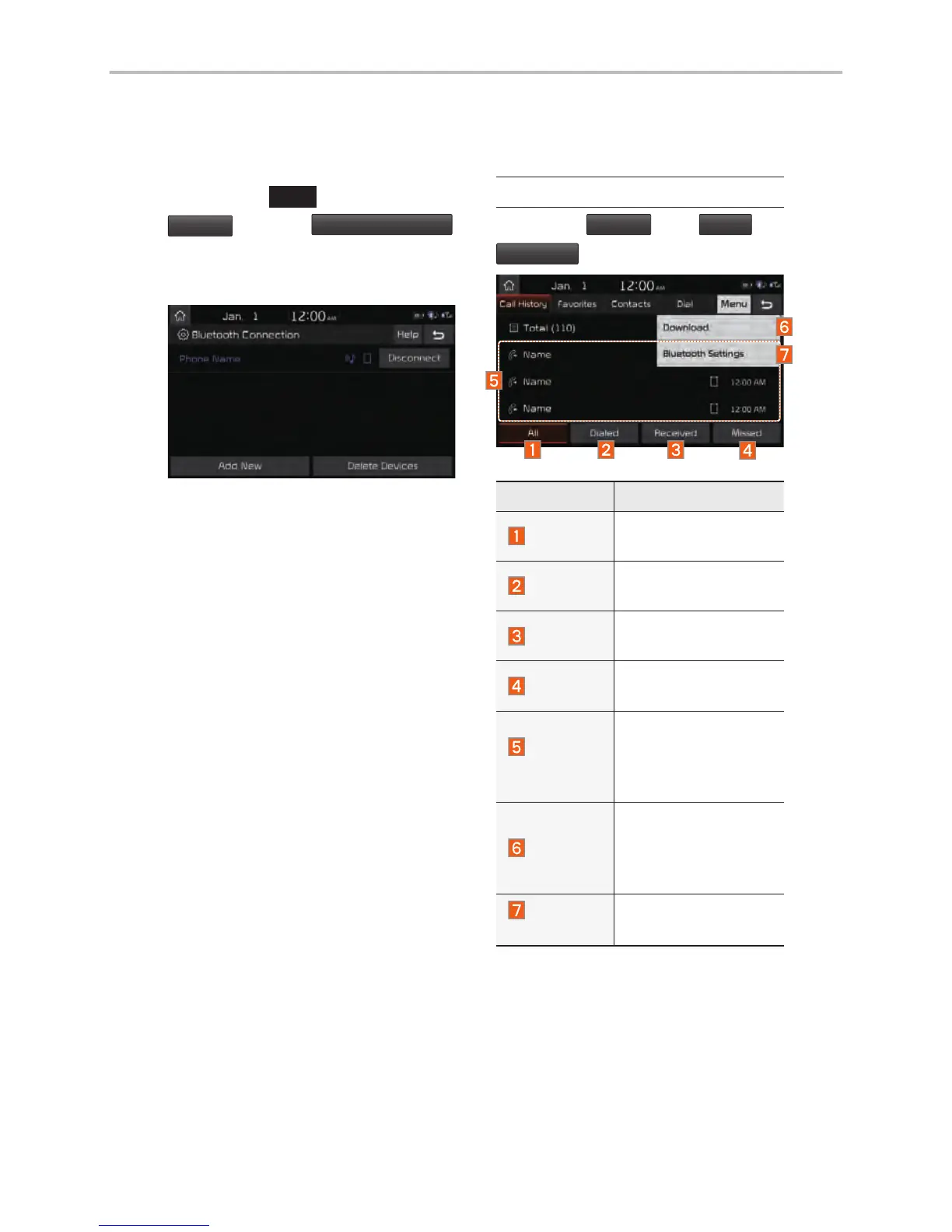 Kia Stinger - Bluetooth Phone; Call History; Bluetooth Settings