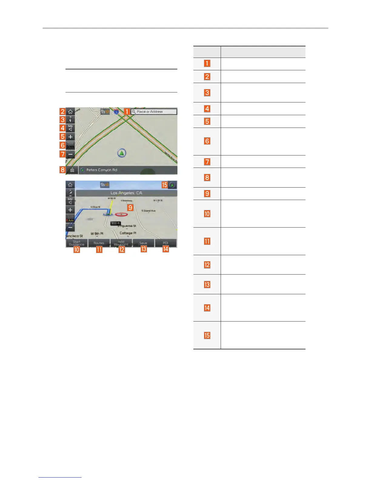 Basic features on the map screen.