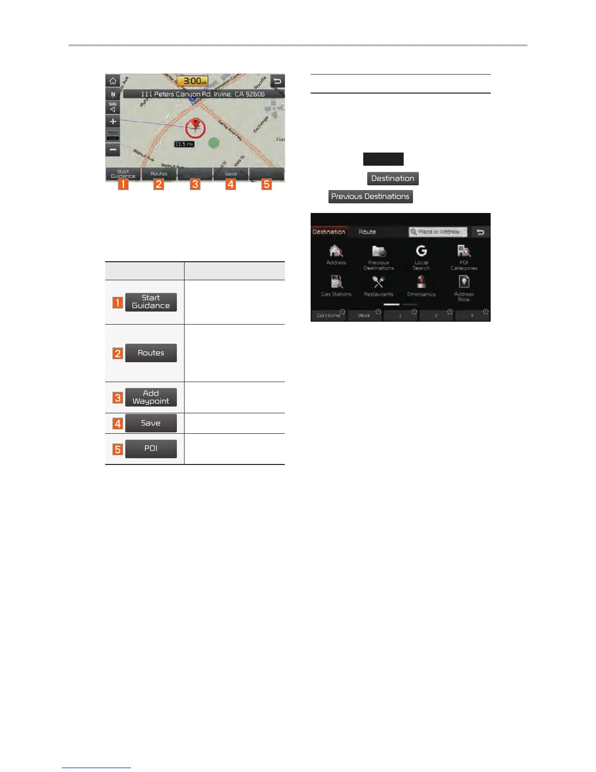Kia Stinger - Navigation History; Previous Destinations Selection