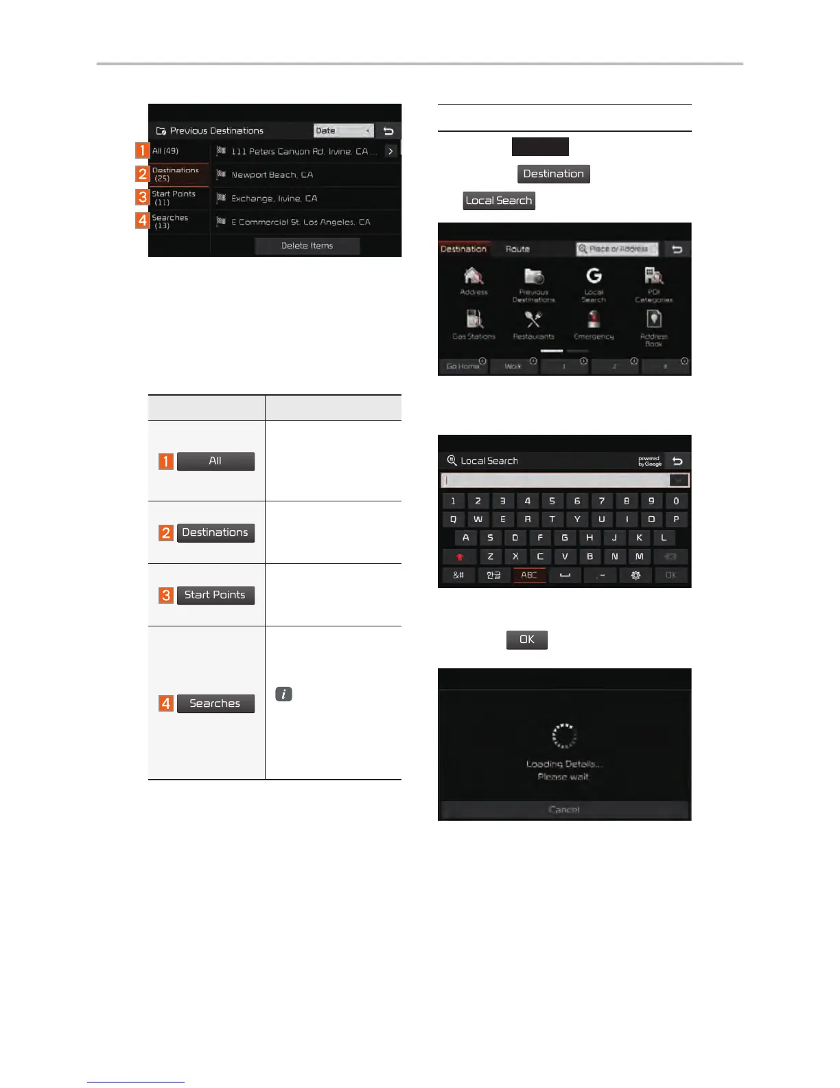 Kia Stinger - Navigation Search Functions; Local Search and Categories