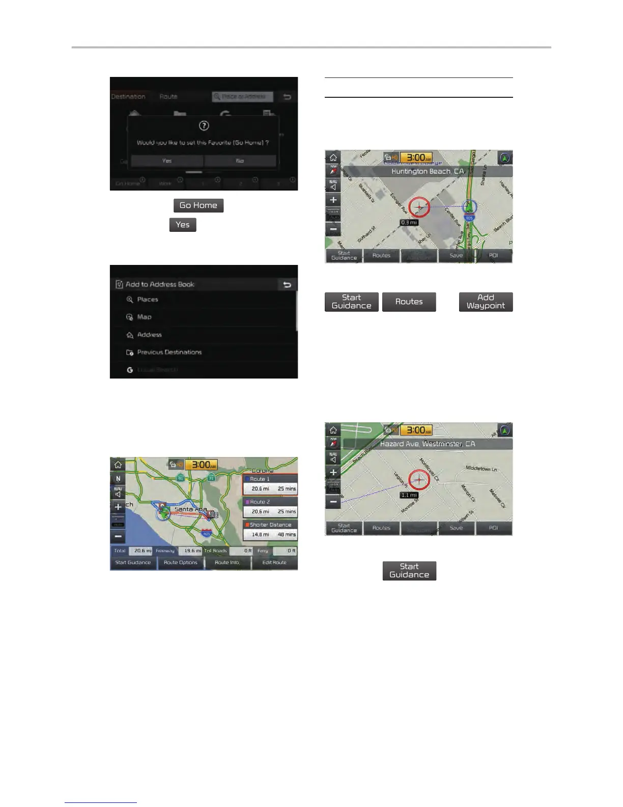 buttons will start the route guidance