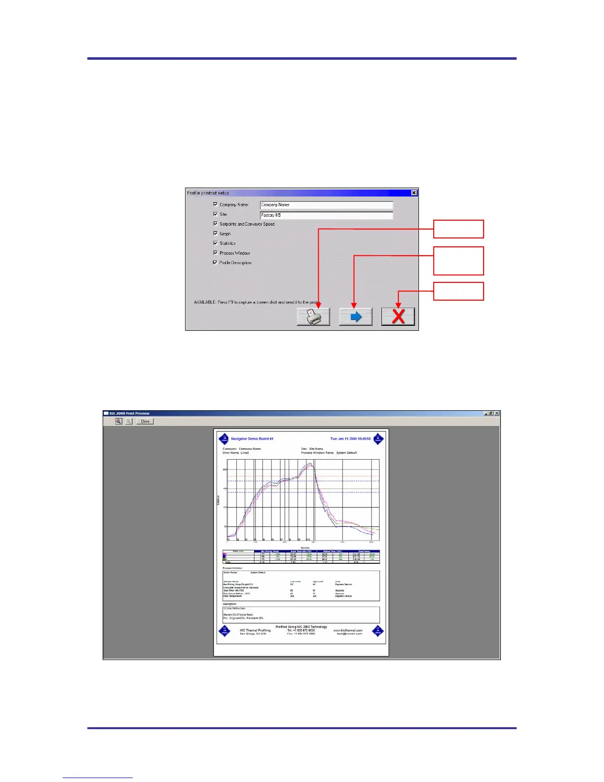 The KIC 2000 software will print profiles only from within the profile display screens. There are two print