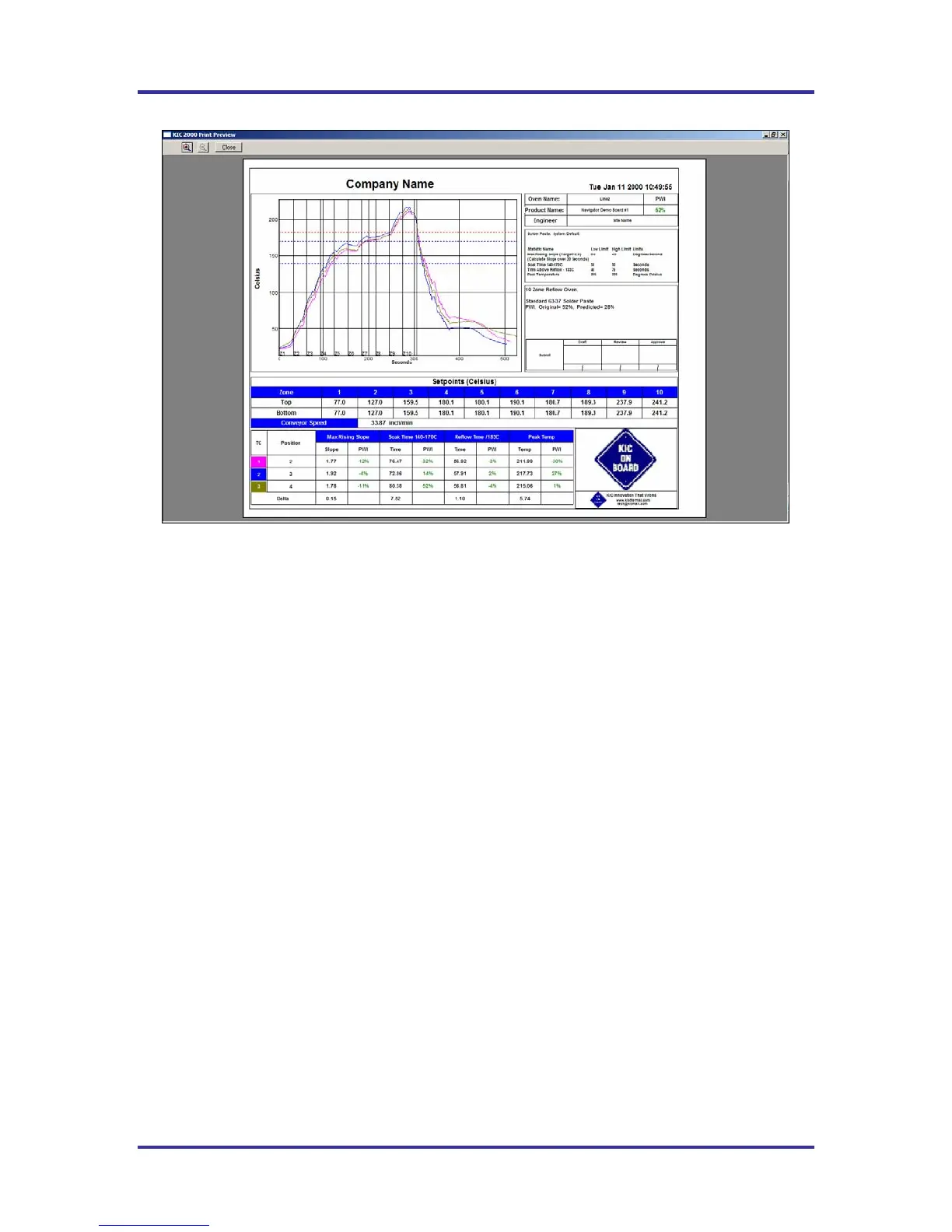 Includes the Company Name, Engineer, Date, Statistics, Process Window, Set Points,