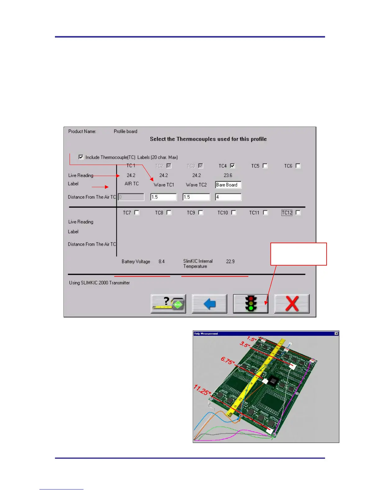 This screen displays the live readings from the KIC profiler for all thermocouples selected, as long as the