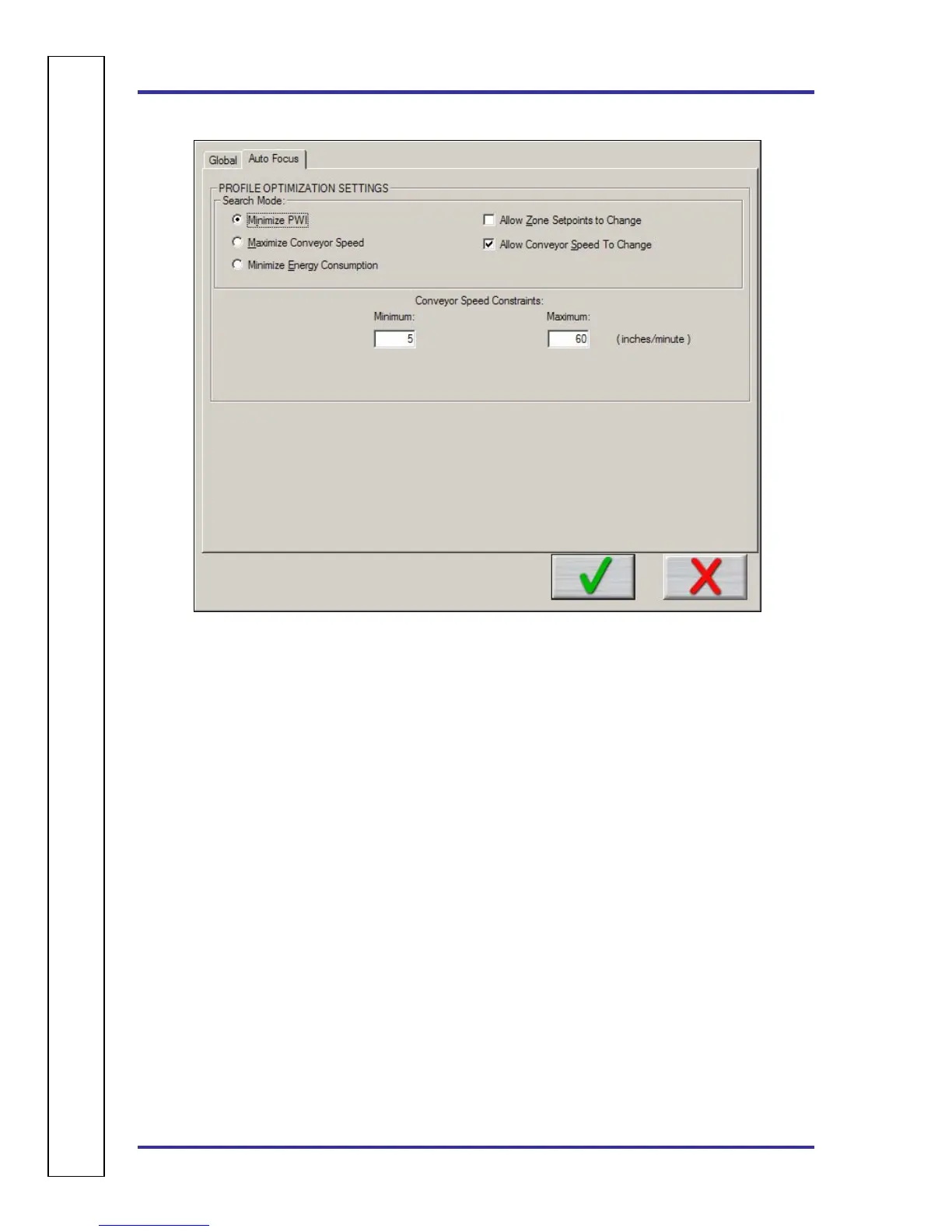 • Allow Conveyor Speed to Change - Choose whether to allow Auto-Focus to vary the conveyor
