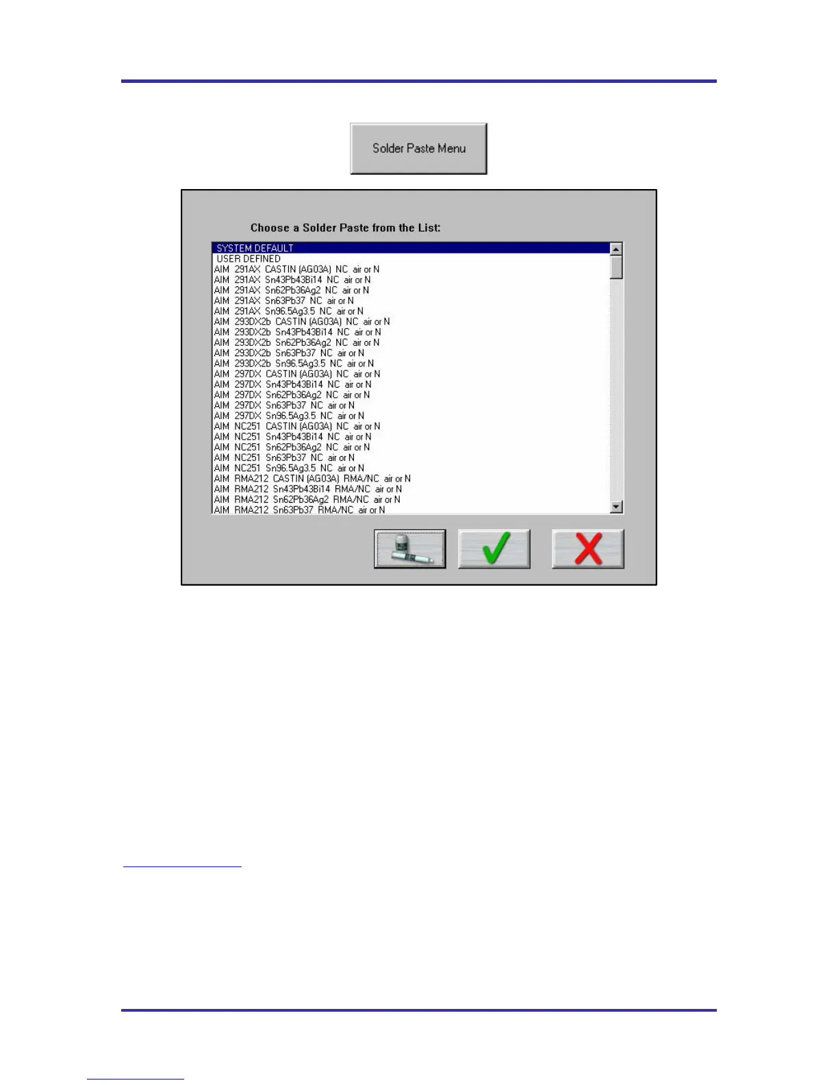 Solder Paste Menu