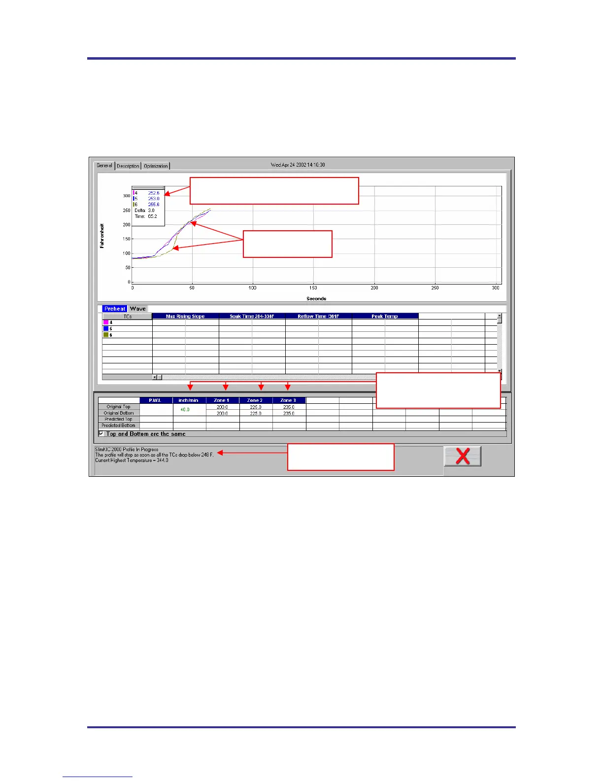 • The current oven temperature set points and conveyor speed for this profile is displayed beneath