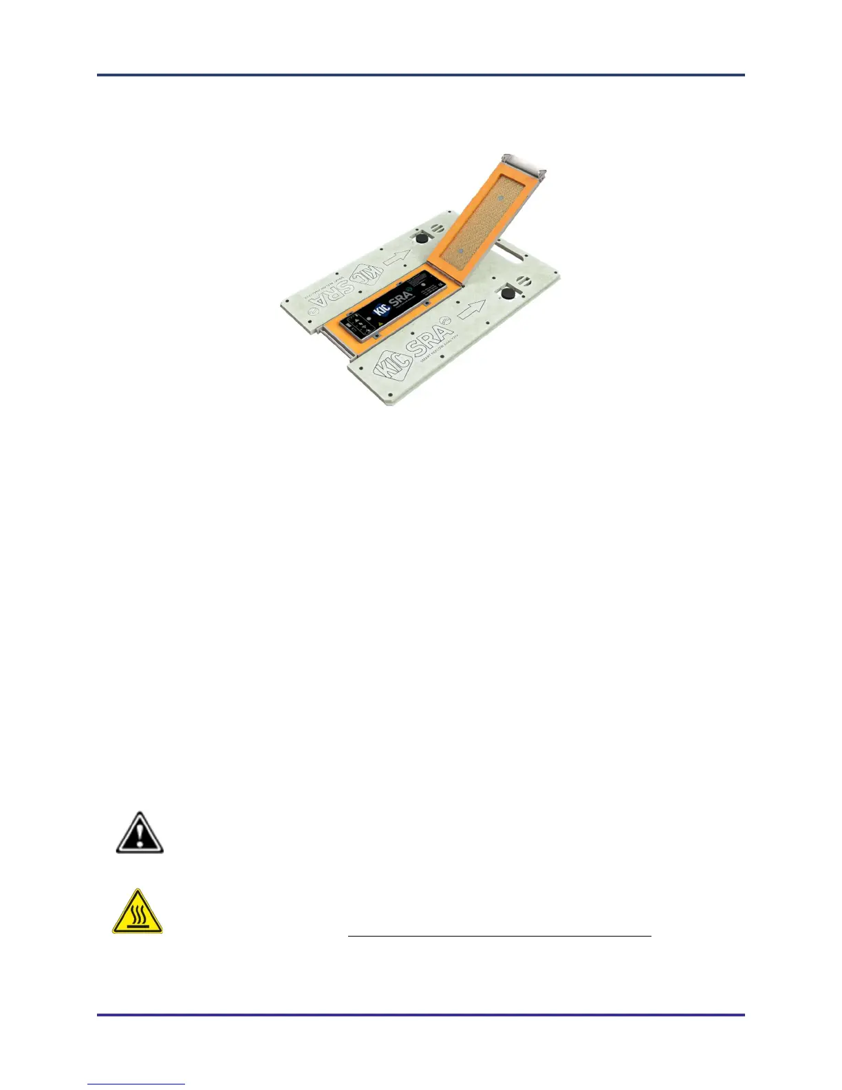 This symbol indicates HOT SURFACE on the SRA shield and pallet. It is used in this guide anywhere
