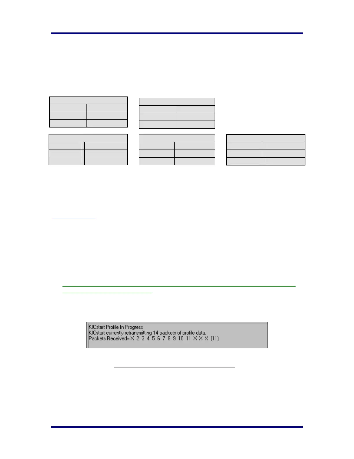 When downloading begins, the KICstart will send the profile in data packets. The downloading status is