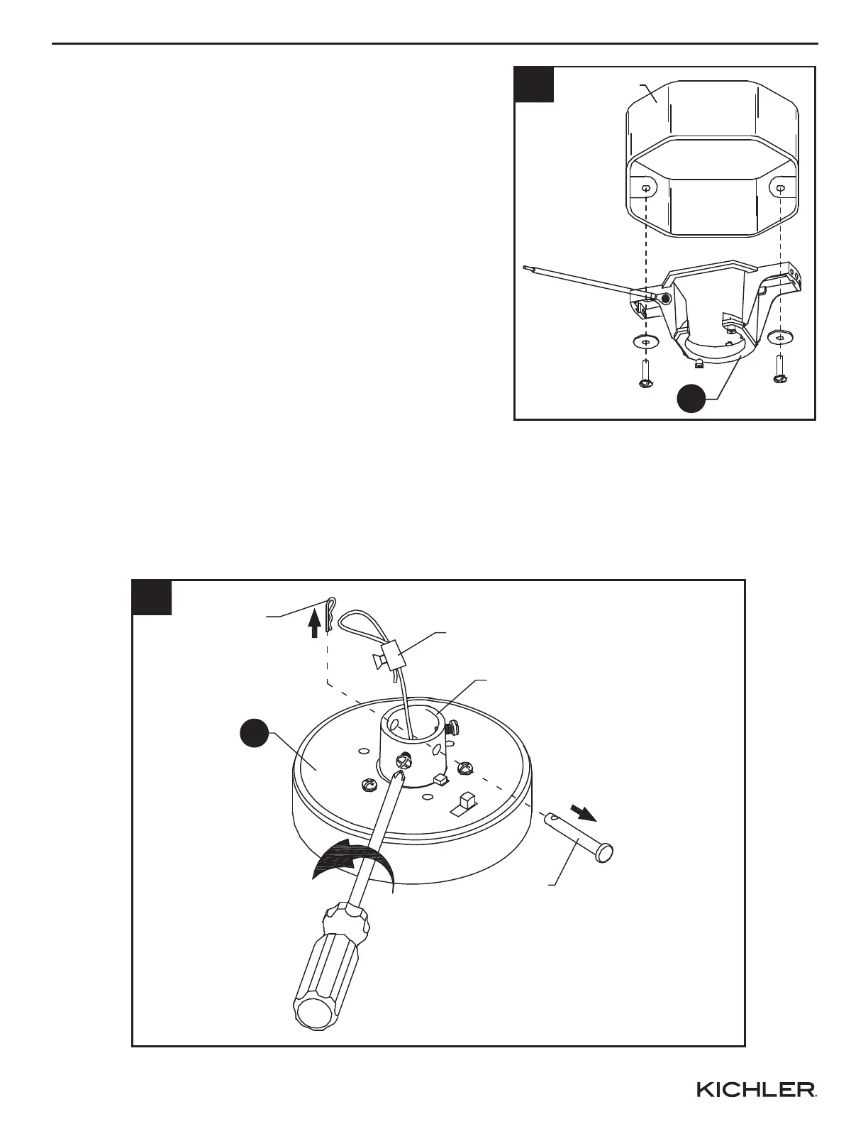 1. Secure the hanging bracket (A) to the ceiling outlet