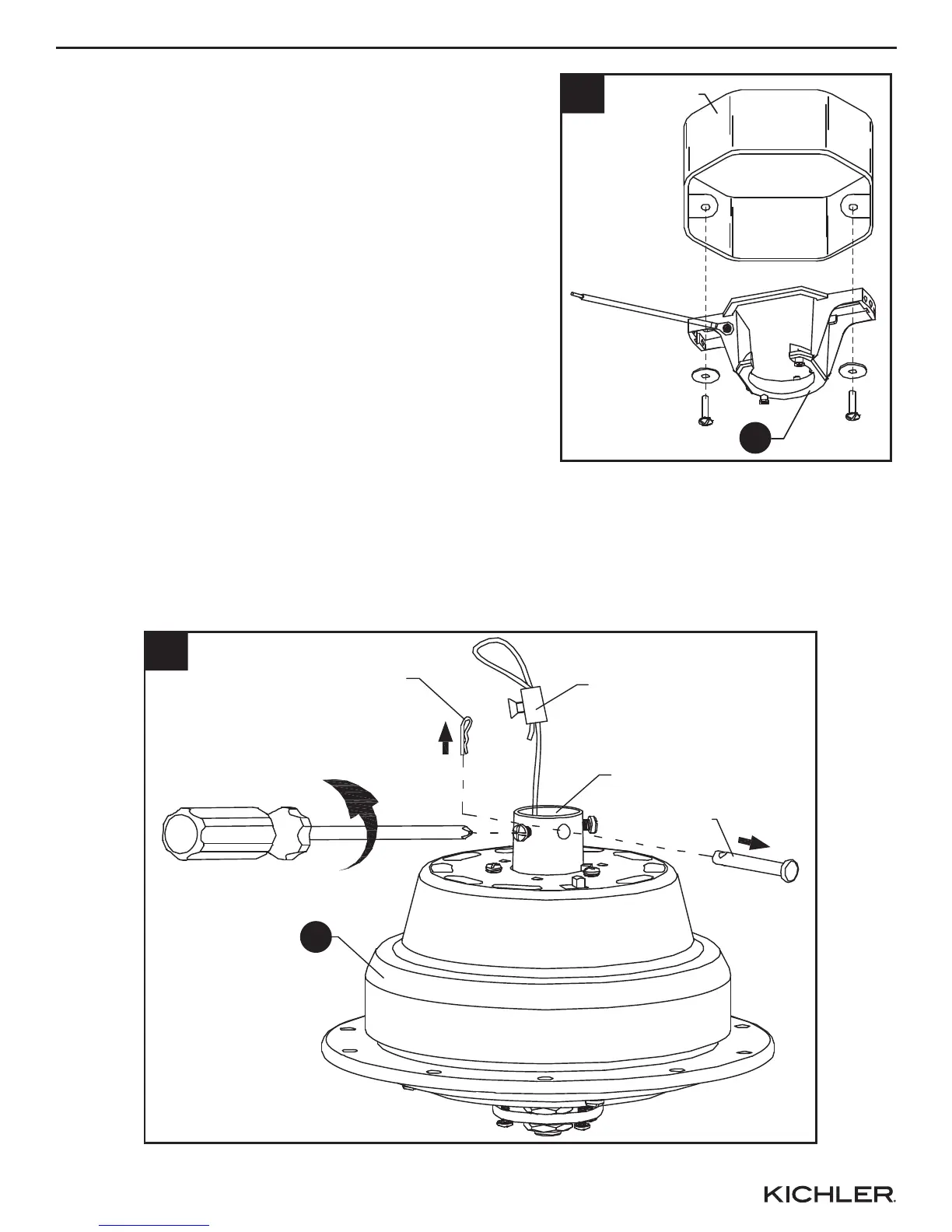 1. Secure the hanger bracket (A) to the ceiling outlet