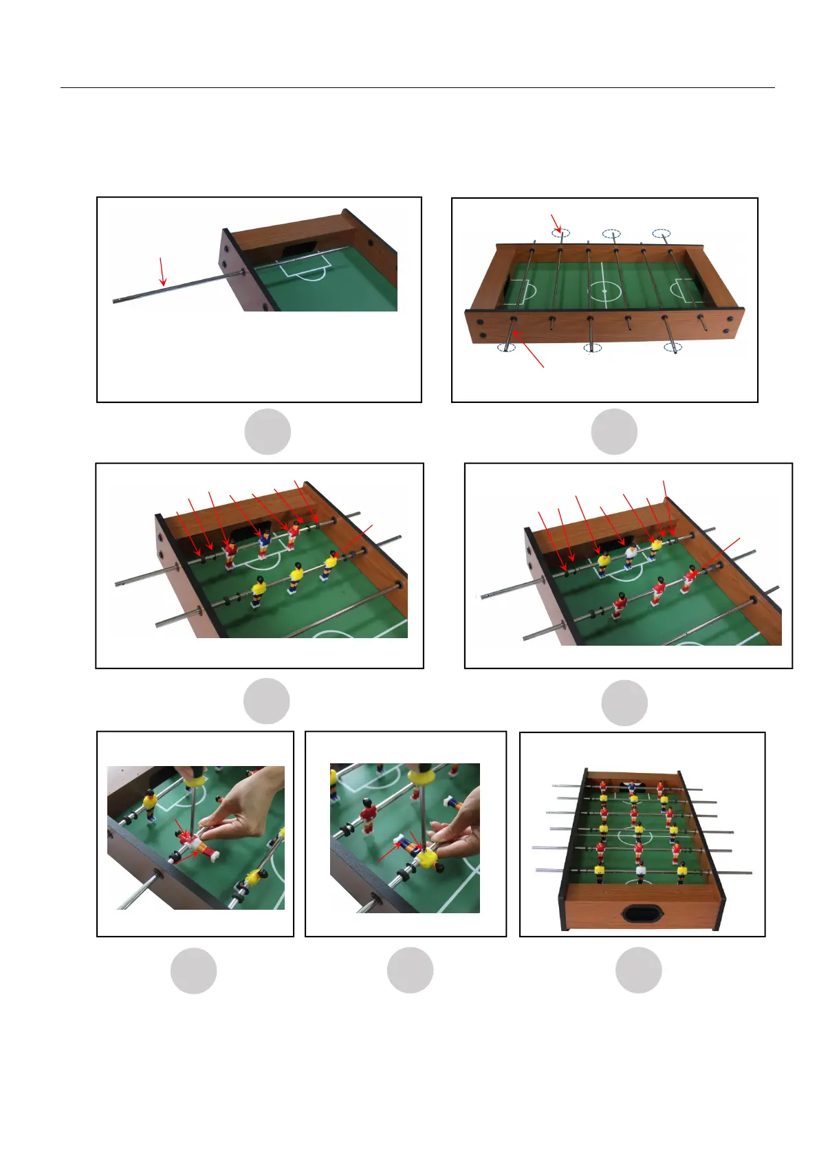 4. INSERT THE PLAYER ROD C1 THROUGH ONE SIDE PANEL,THEN INSERT PLAYERS C5&C6&C7&C8,