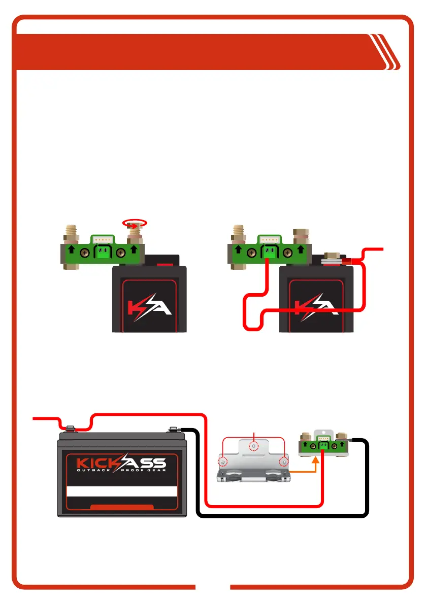 1. To bolt the shunt directly to the battery terminal, remove the bolts from the shunt assembly and