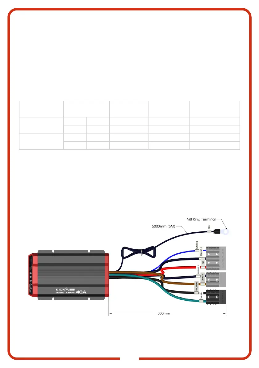Please refer to this table for Vehicle Input, Solar Input, Ground and Battery Output cable thickness