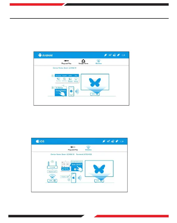 Select the screen mirroring function on your iOS device and select 'Beam-xxxx'