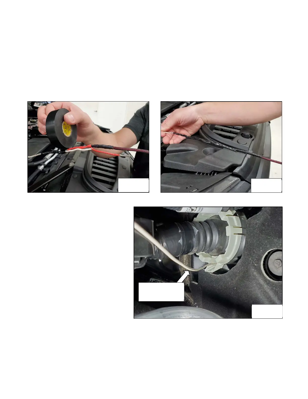 5. Using electrical tape, tape the power harness to the fish tape or stiff wire as shown with one of