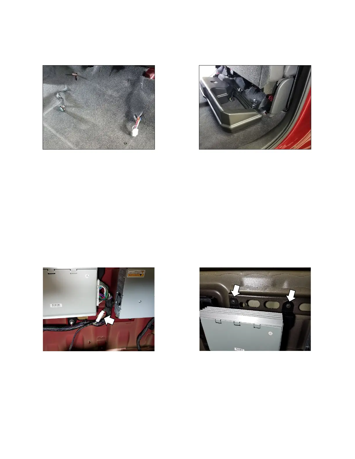 24. Make wire harness connections to subwoofer and amplifier and set subwoofer in place aligning