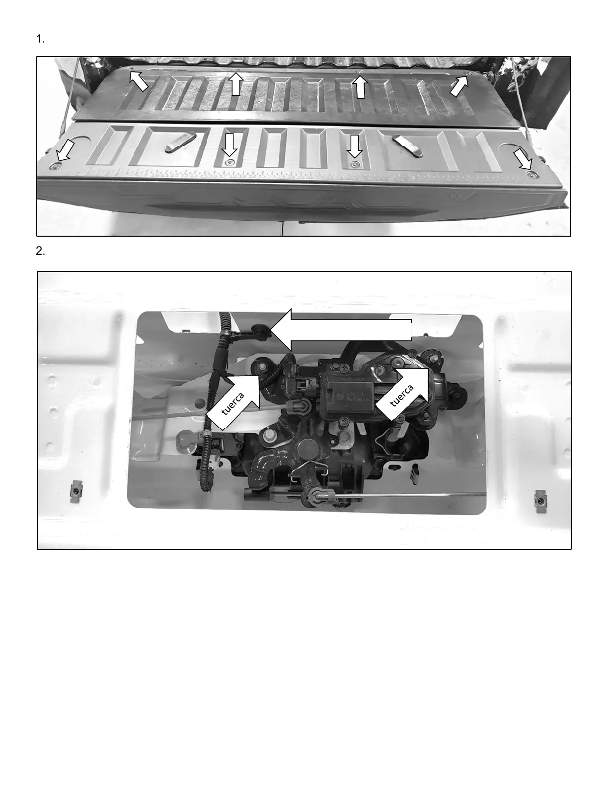 Afloje las dos tuercas que aseguran el mecanismo de cierre de la compuerta trasera y desconecte el retenedor