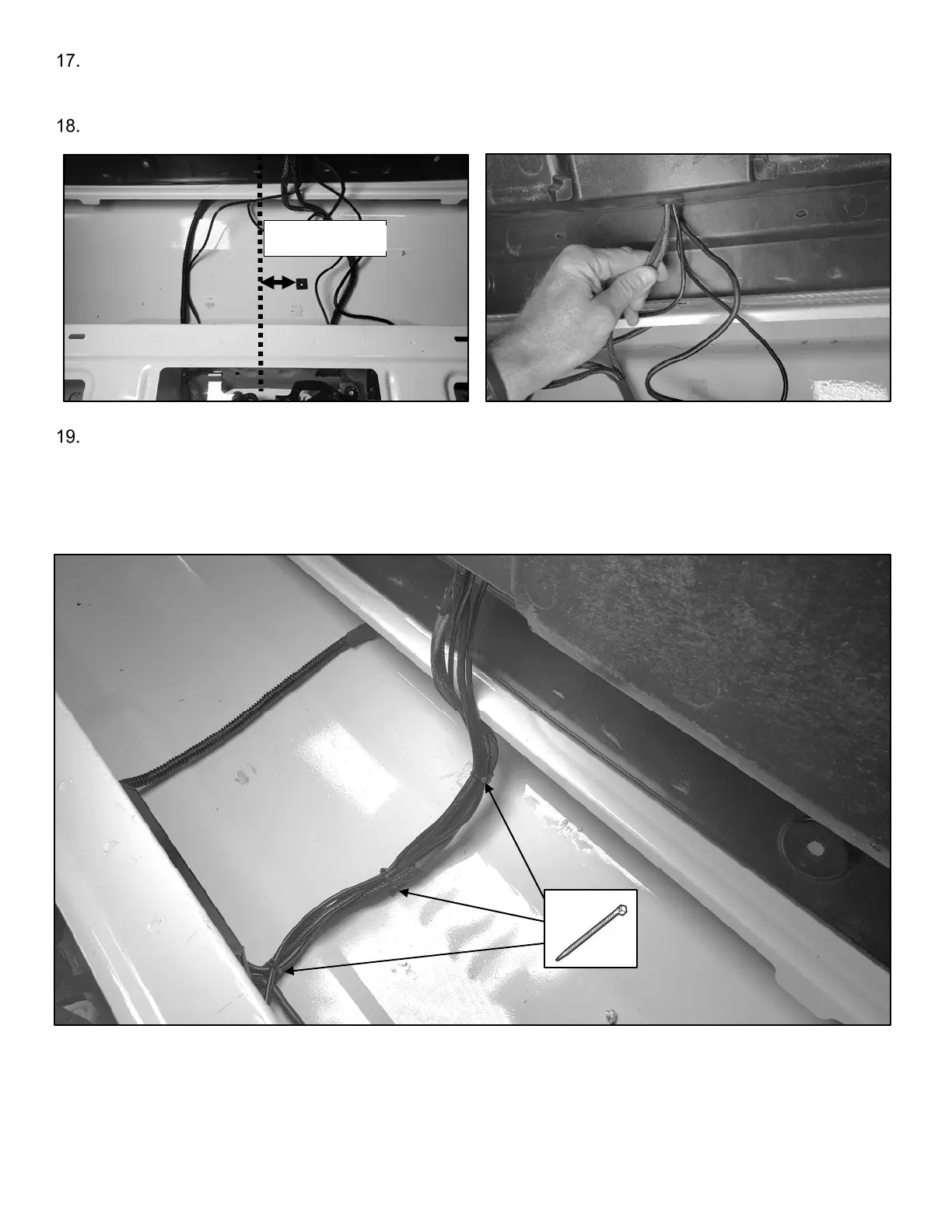 Junte todos los cables y fíjelos con amarras. La amarra central que se muestra debe estar colocada a través del