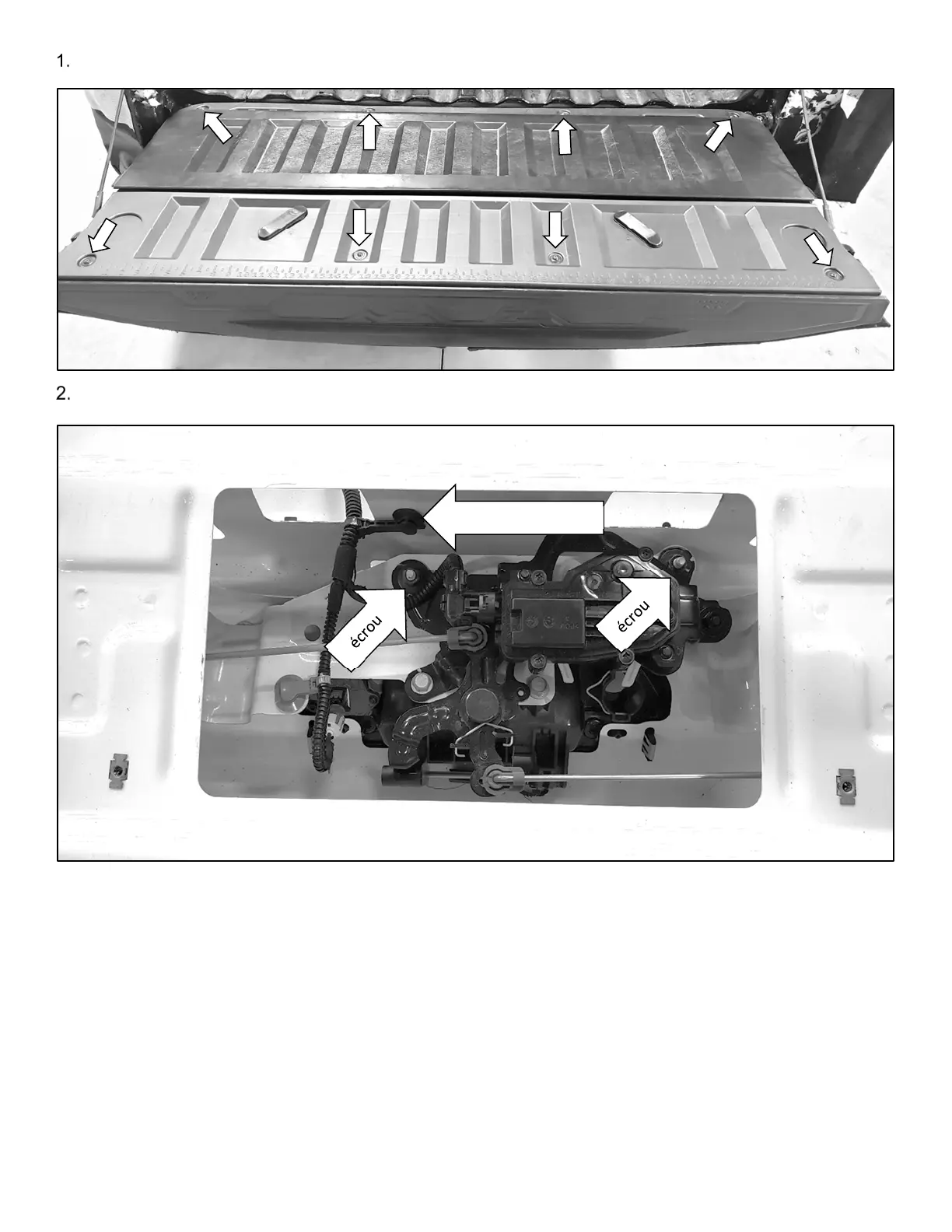 Ouvrez le hayon et retirez les 8 vis fixant son couvercle. Retirez celui-ci.