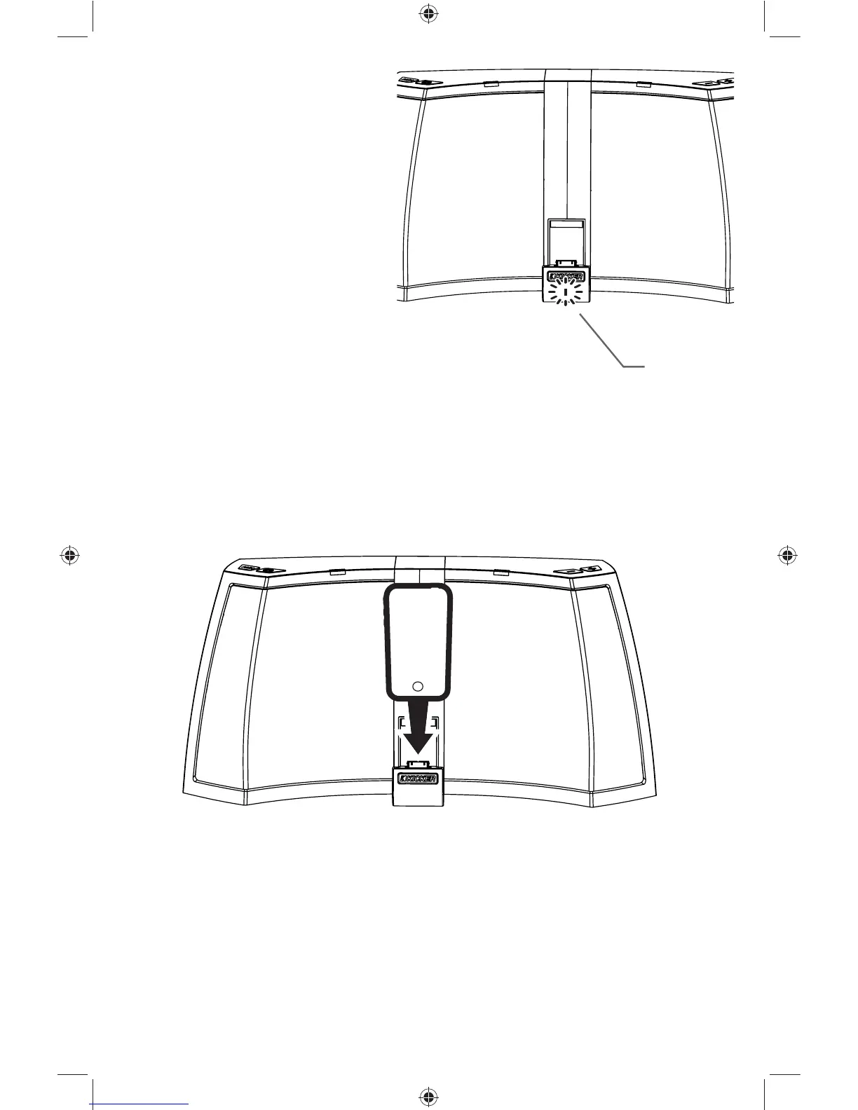 • destella brevemente después de insertar su iPod / iPhone / iPad