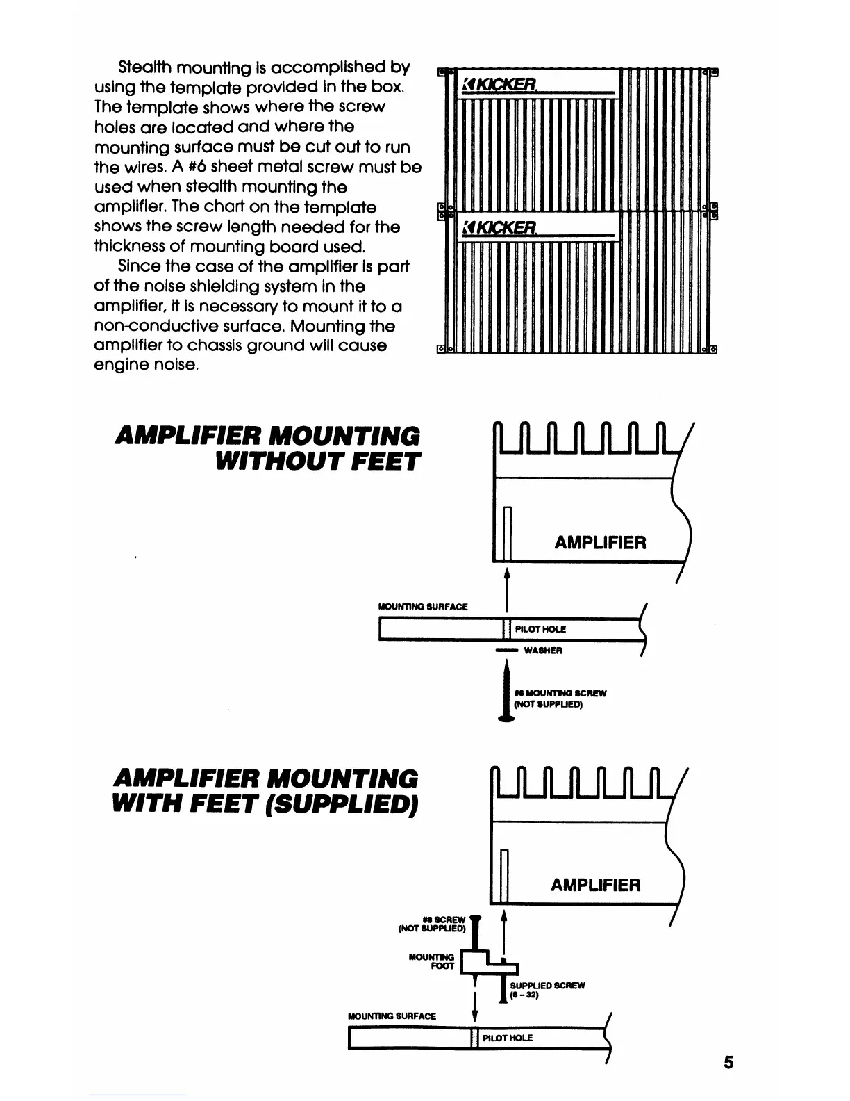 Kicker 40ss - Amplifier Mounting Without Feet; Amplifier Mounting with Feet