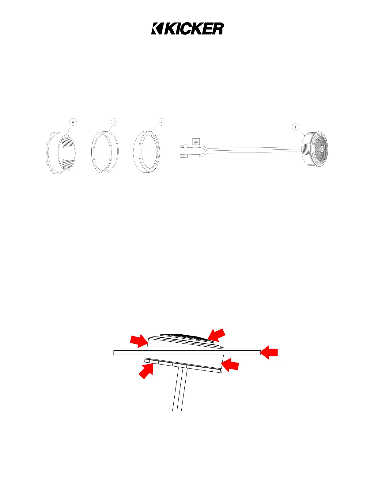 2. Route the tweeter wire into the convex side of the upper angle mounting ring and out