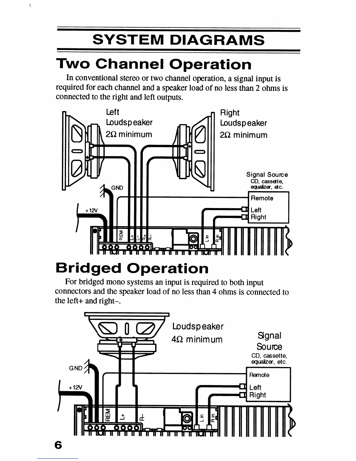 Kicker 500si - System Diagrams; Two Channel Operation; Bridged Operation