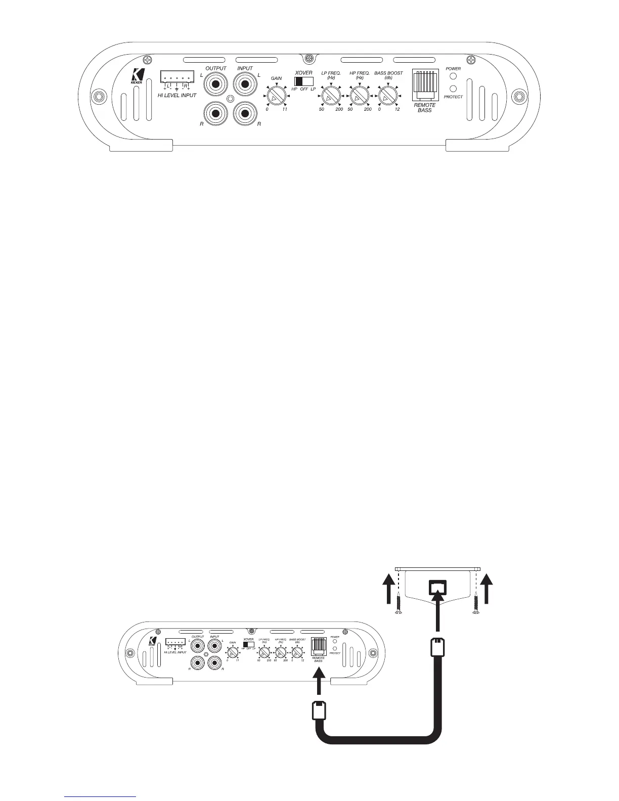 Stecken Sie das Kabel von der Fernbedienung in die „Remote Bass“-Buchse am Verstärkergehäuse.
