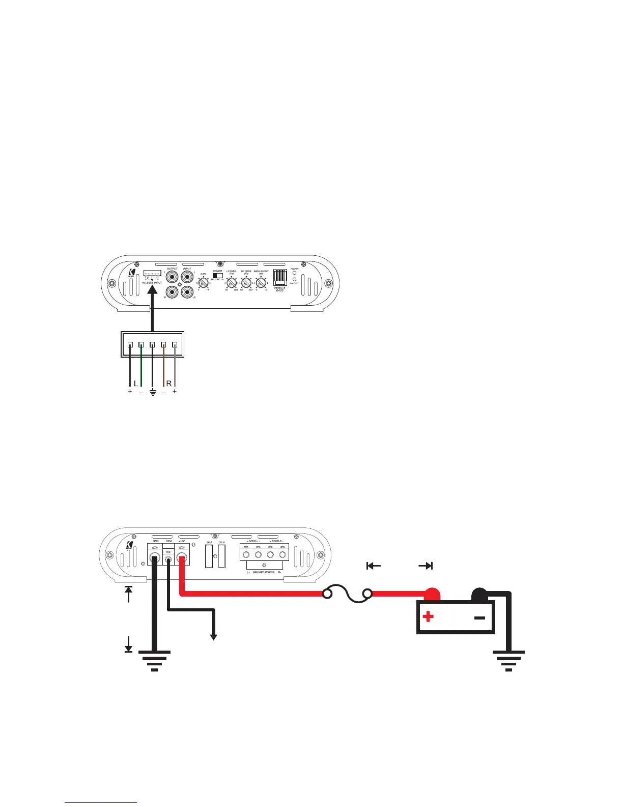 Schließen Sie dann das Massekabel an den Verstärker an. Verbinden Sie die GND-Klemme des Verstärkers mit