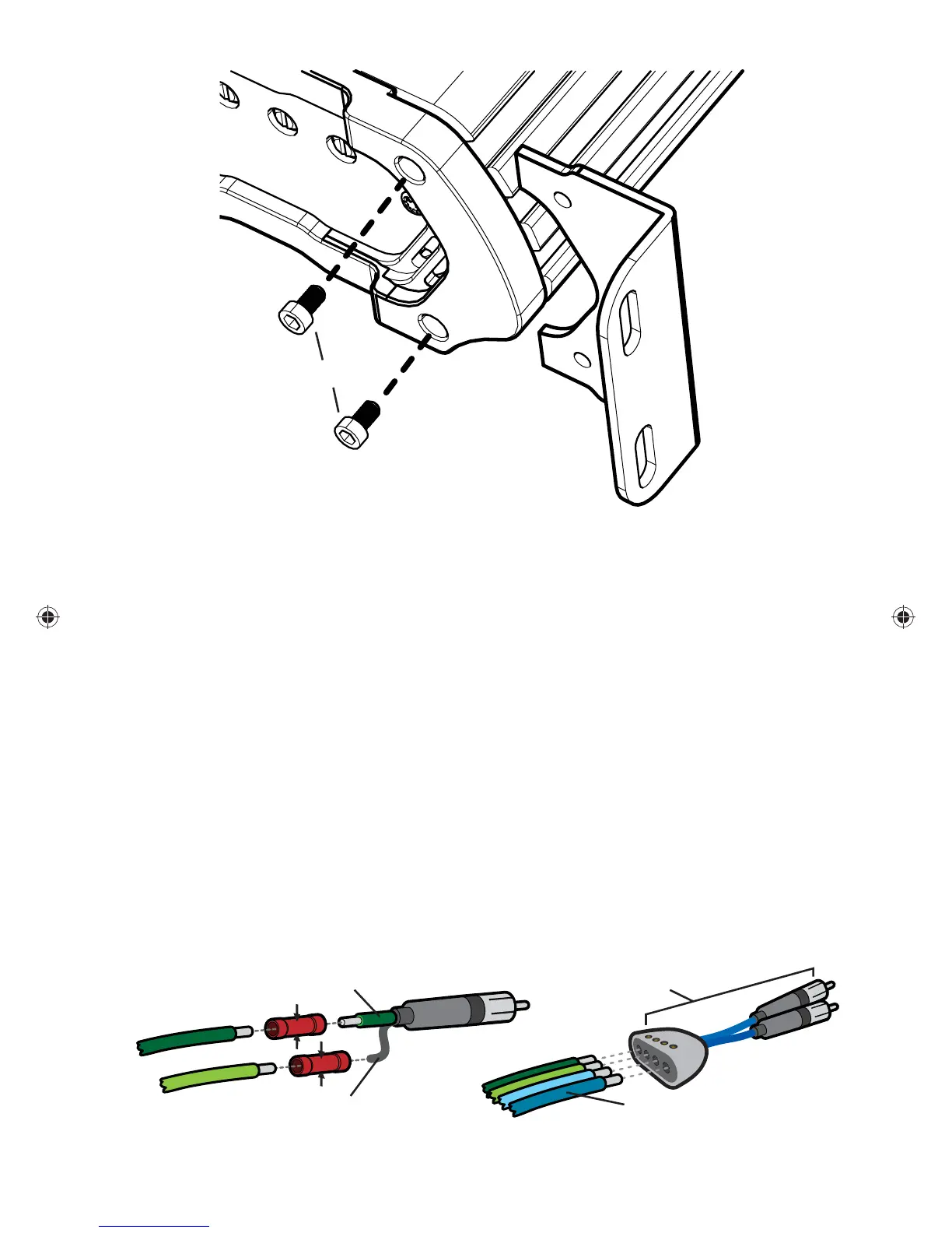 connecteurs RCA à l’extrémité du fi l du haut-parleur venant des sorties de haut-parleur de haut niveau sur