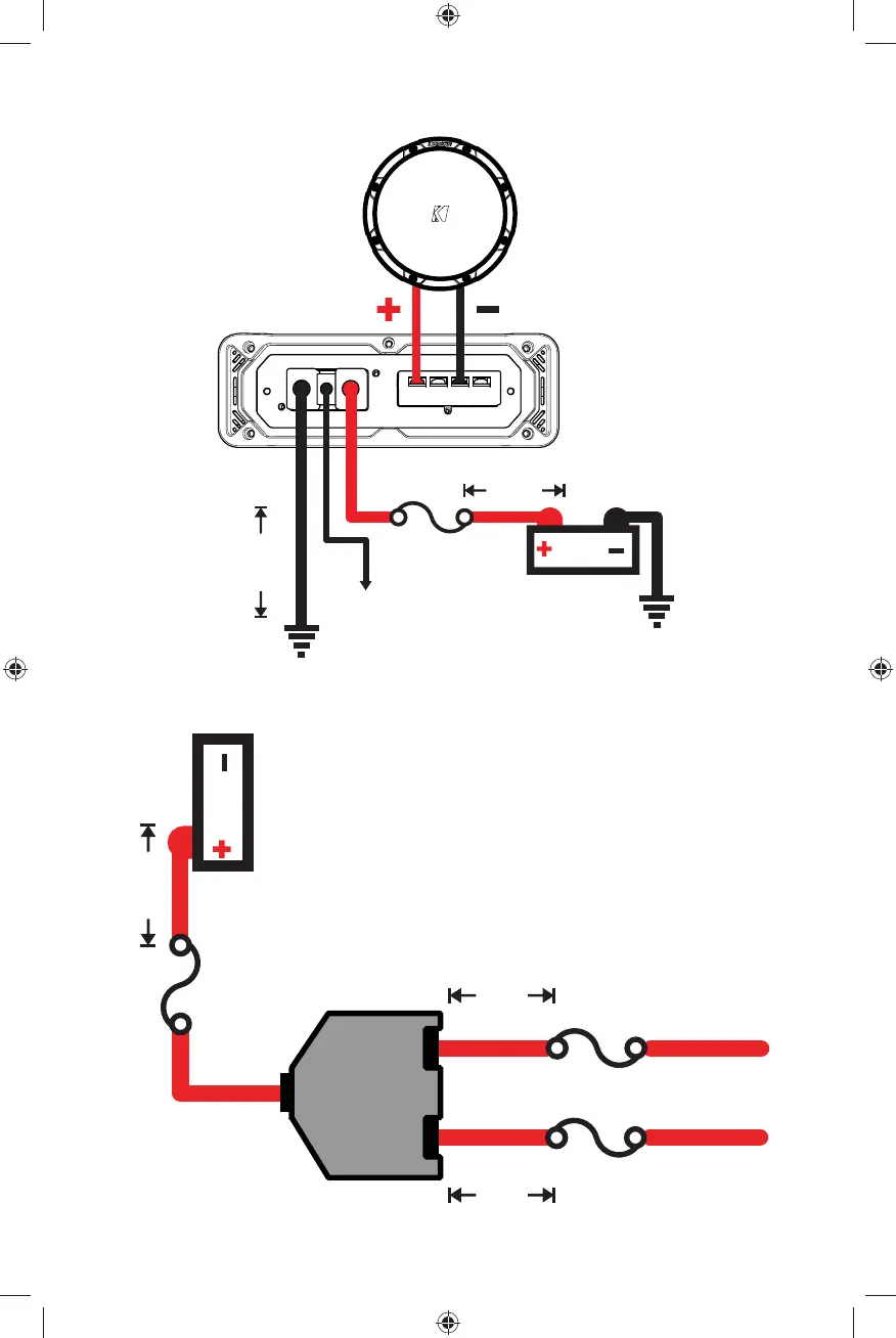 von 45 cm (18 Zoll) zum Pluspol der Batterie mit einer Sicherung