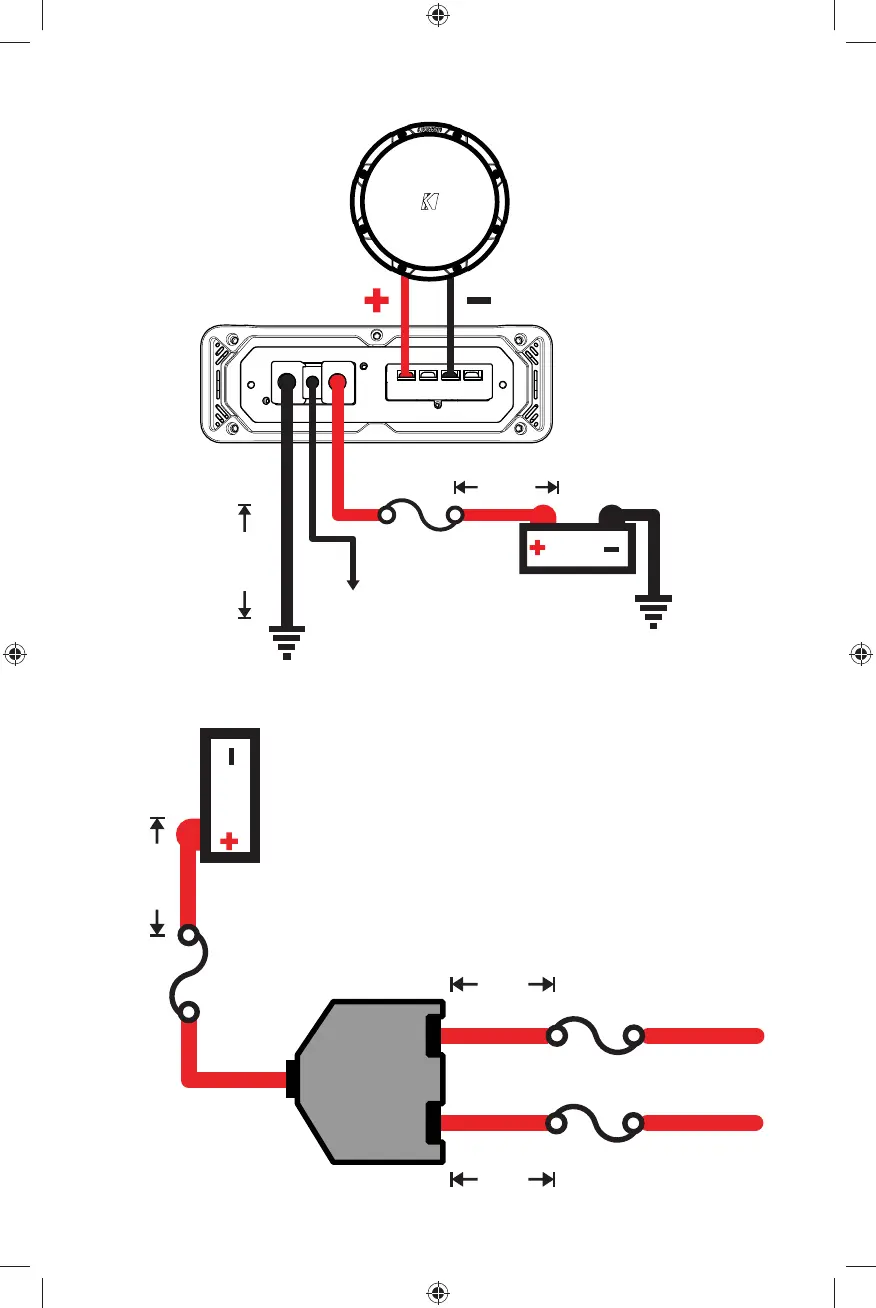 (sept pouces) de la borne B+ de la batterie, avec un fusible