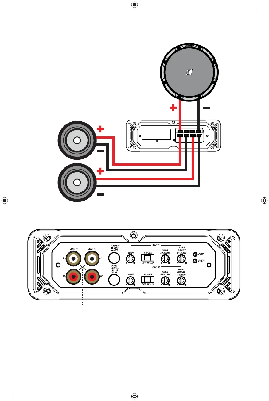 labeled REM between the amplifi er’s positive and negative power terminals. This is the preferred automatic