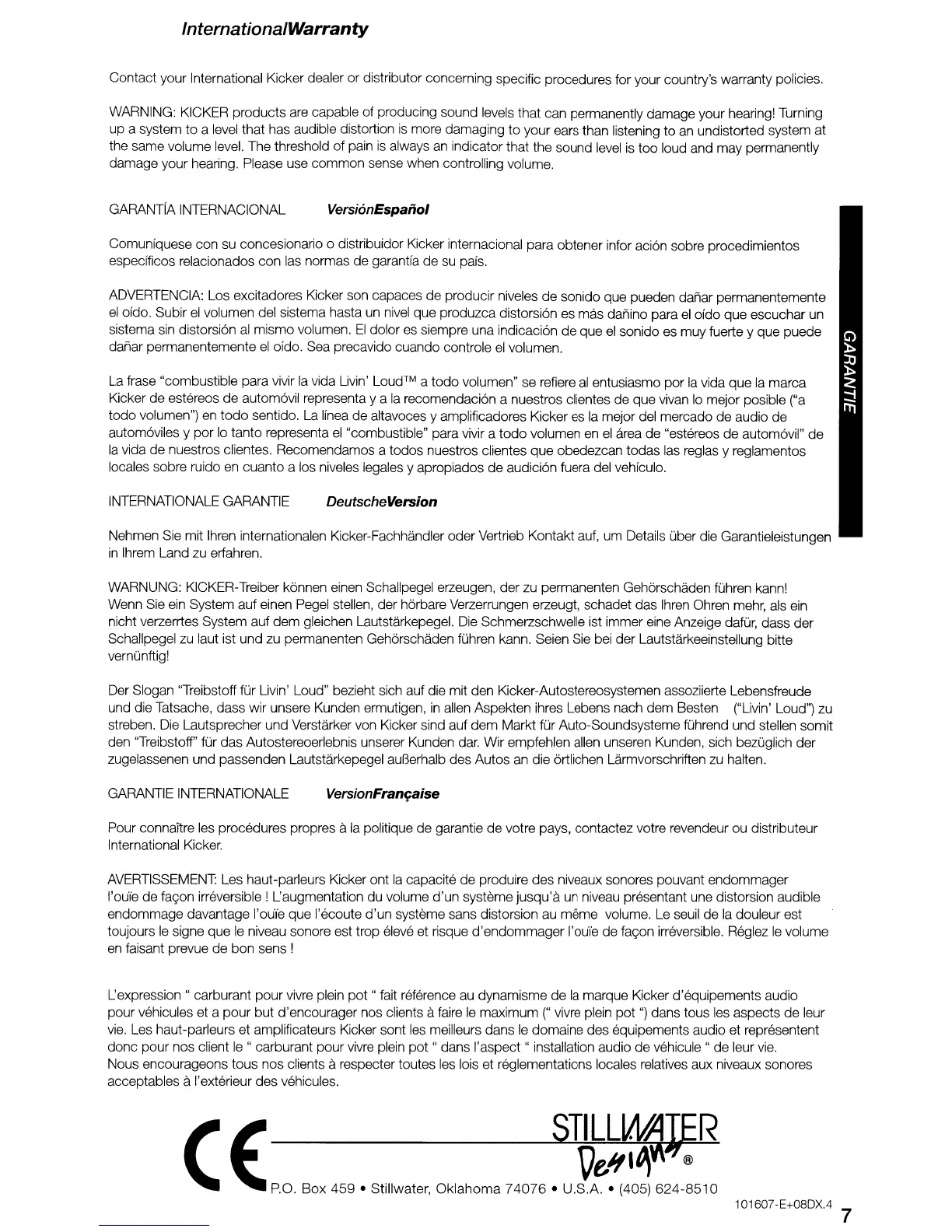 Contact your International Kicker dealer or distributor concerning specific procedures for your country's warranty policies.
