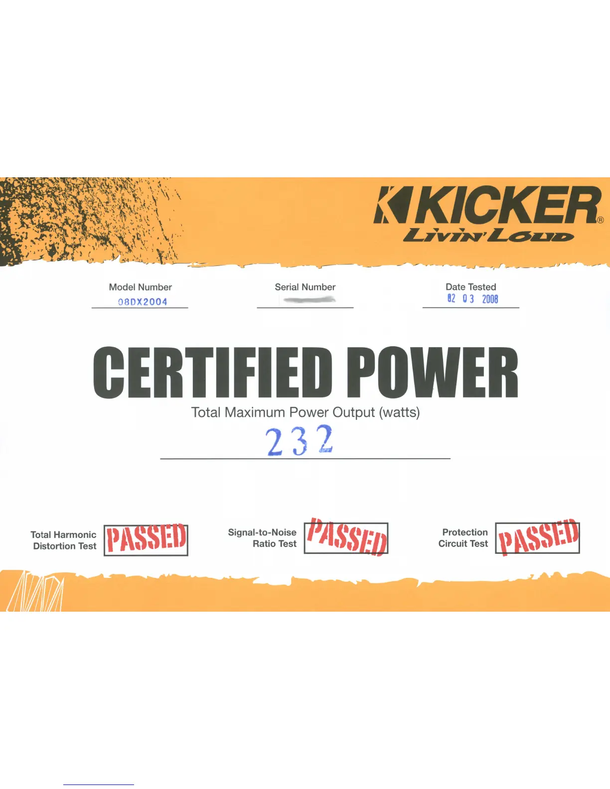 Kicker DX200.4 - Certified Power Output; Power Output Measurement